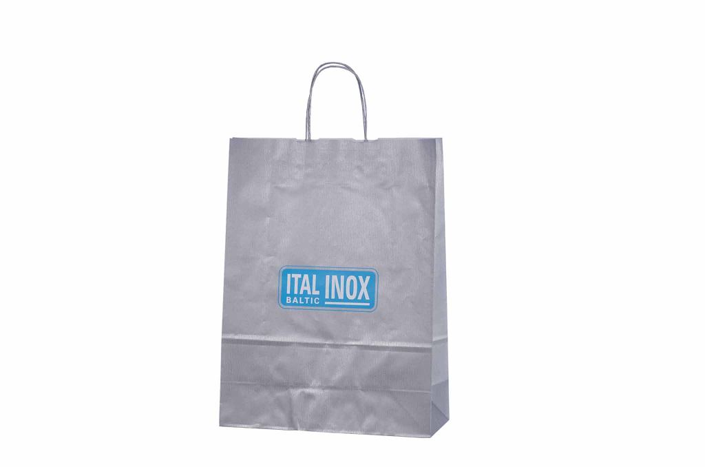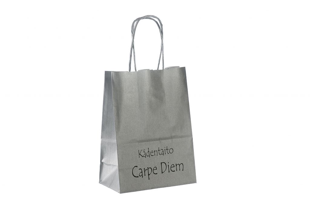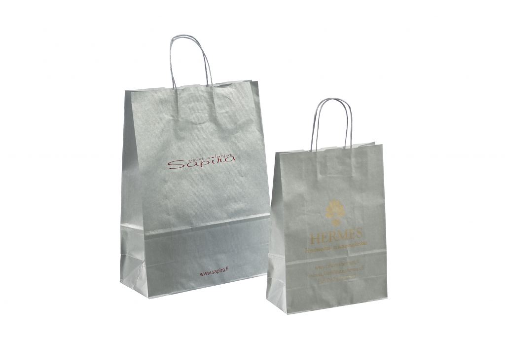 sølv papirspose med personligt logo | Galleri af værker- sølv papirsposer med tryk sølv papirspose