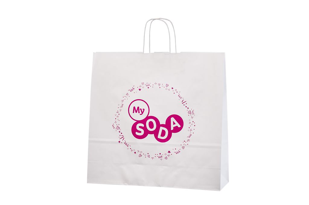 fördelaktiga vita papperskassar med tryck | Bildgalleri - Vita papperskassar Väldesignad, högklass