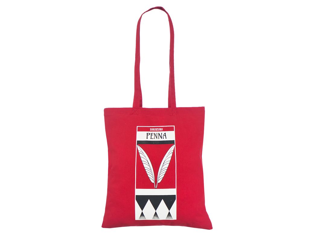 Fotogalerii- punast värvi riidest kott trükiga