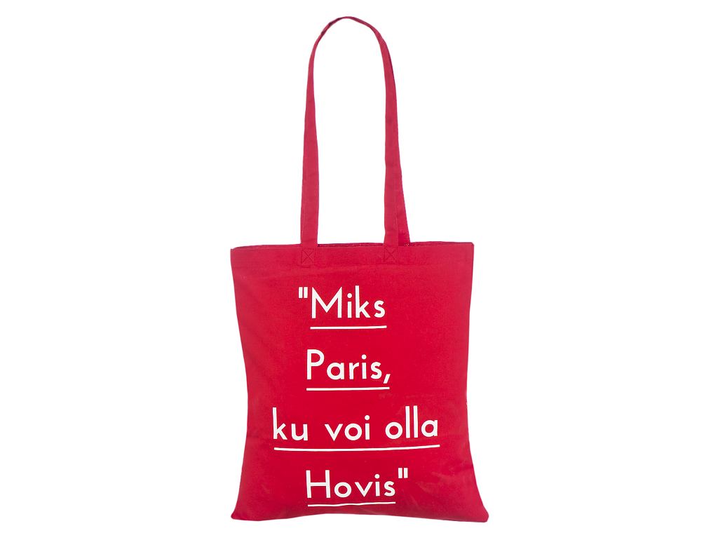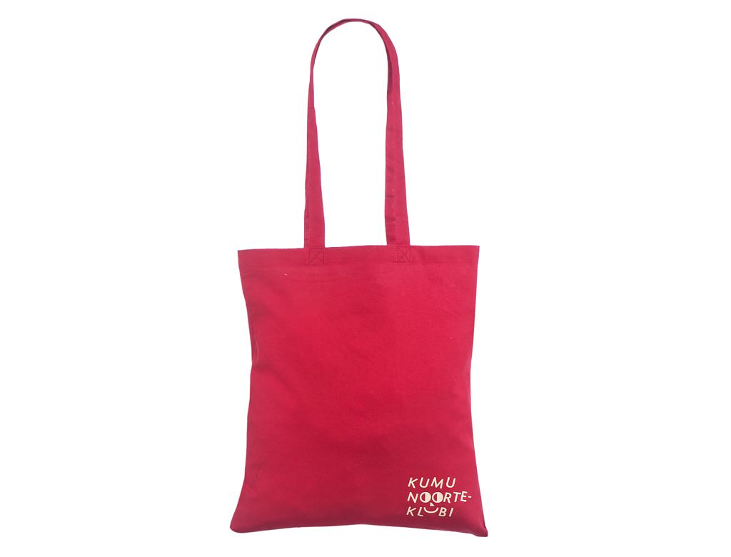 Punast värvi riidest kott personaalse trükiga. Trükiga kottidele miinimum kogus alates 50 kotist.
