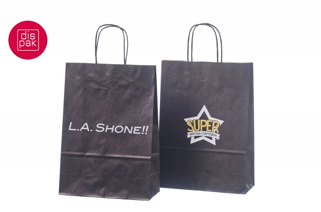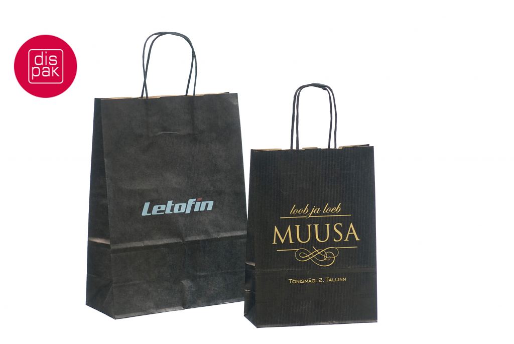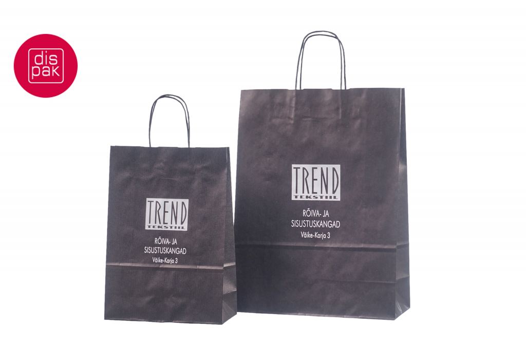 Mustadele paberkottidele on võimalik peale trükkida 1 kuni 4 värvi. Kottidele trükime logo enamjaolt siiditrükis ja 1 värviga. Miinimum kogus trükiga kottidele algab 50 tükist.