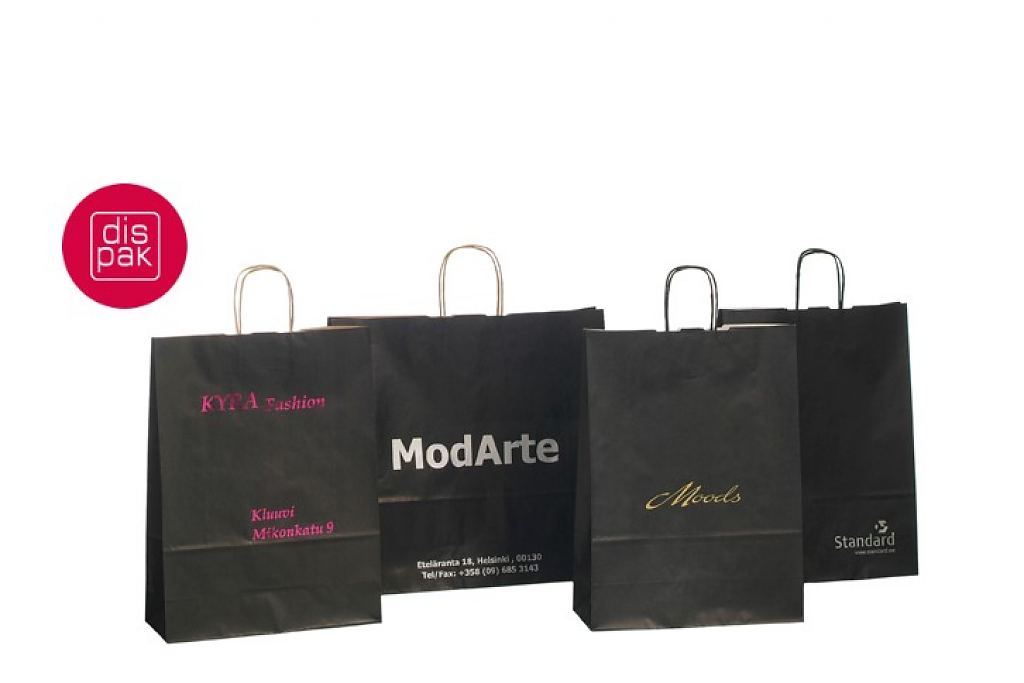 must paberkott | Fotogalerii- mustad paberkotid, millele trükitud klientide logod.