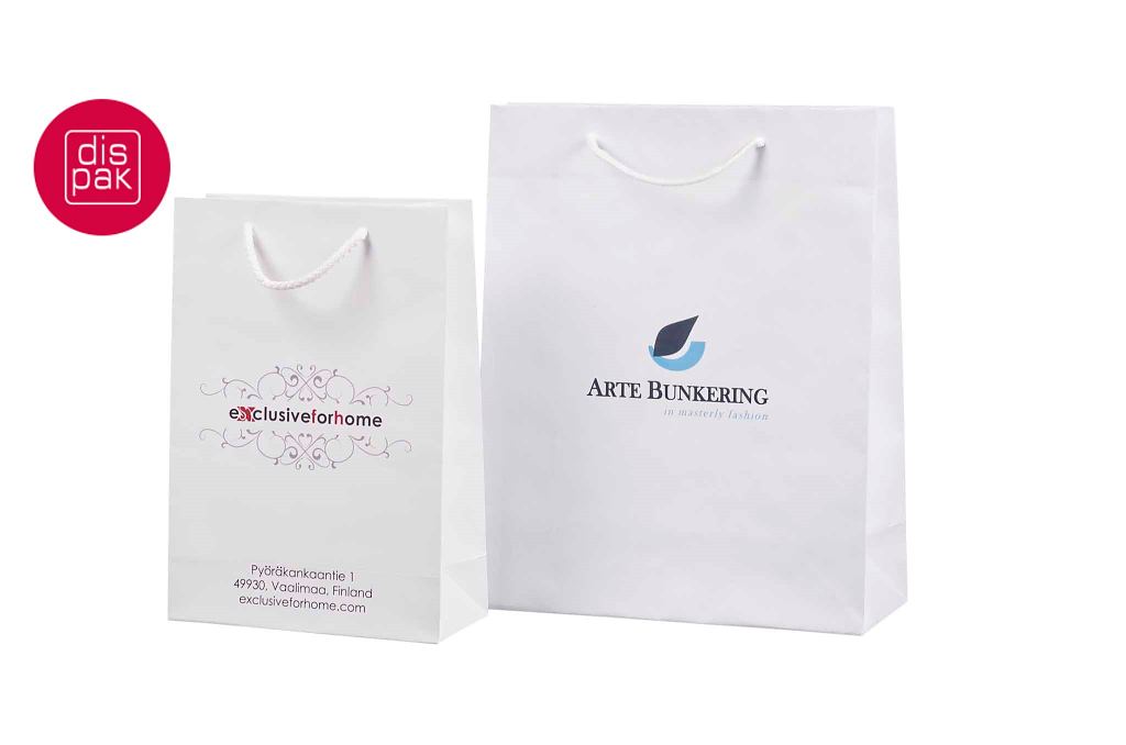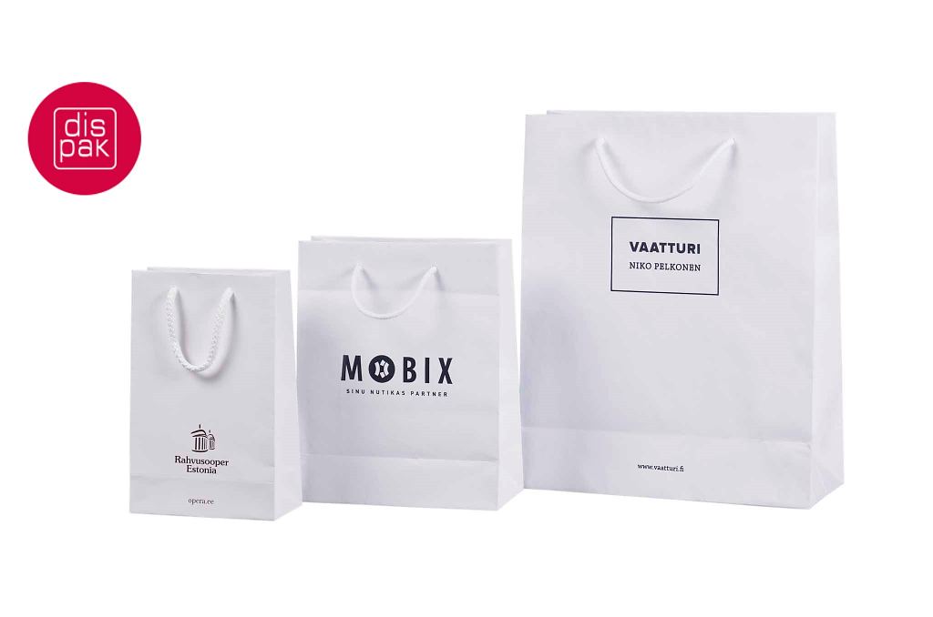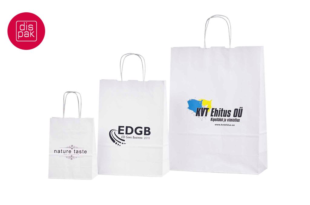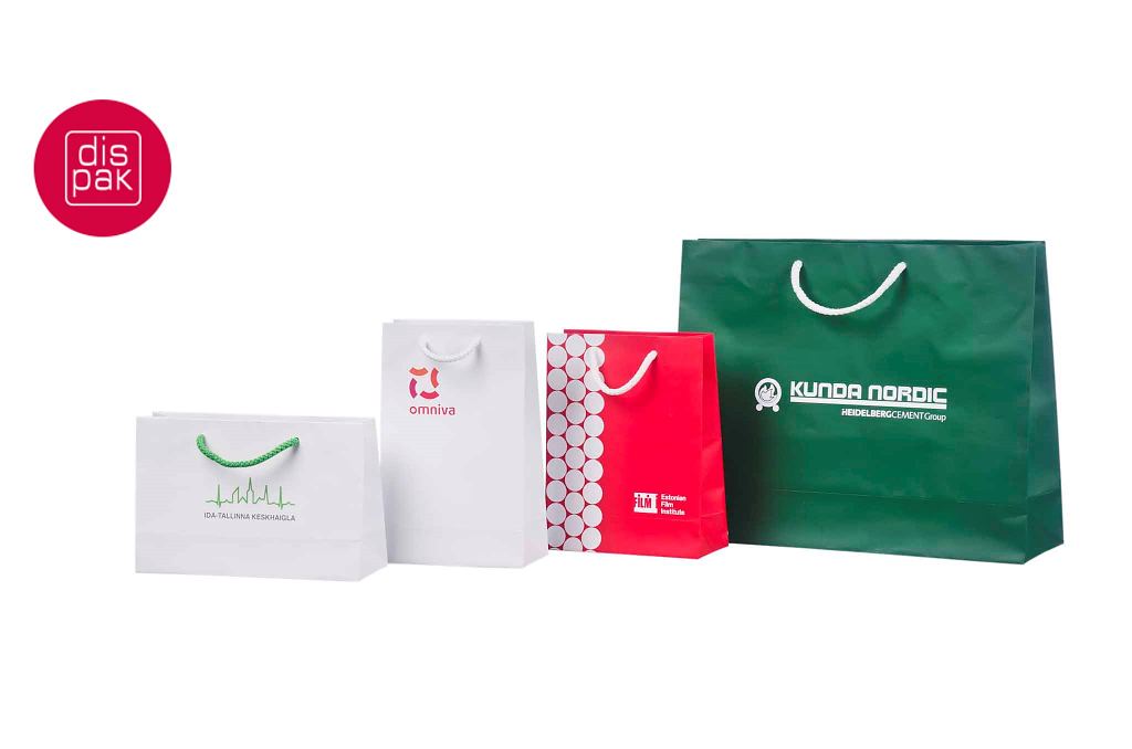 Ülevaade erinavetst trükiga paber- ja riidekottidest.