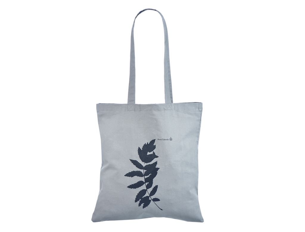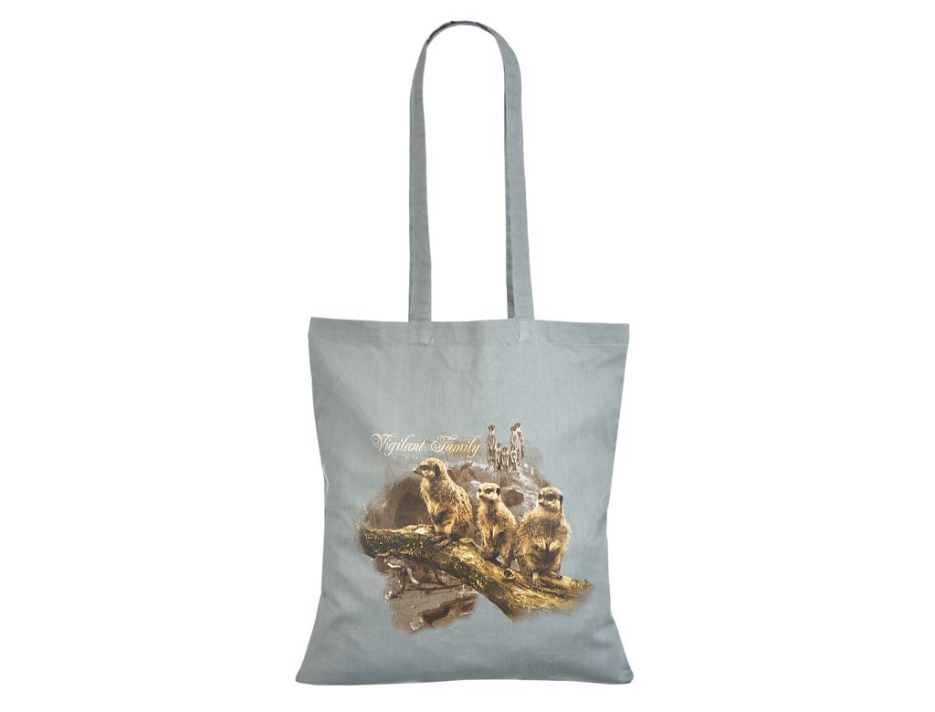 Fotogalerii- halli värvi riidest kott trükiga Pikkade sangadega halli värvi riidest kott
