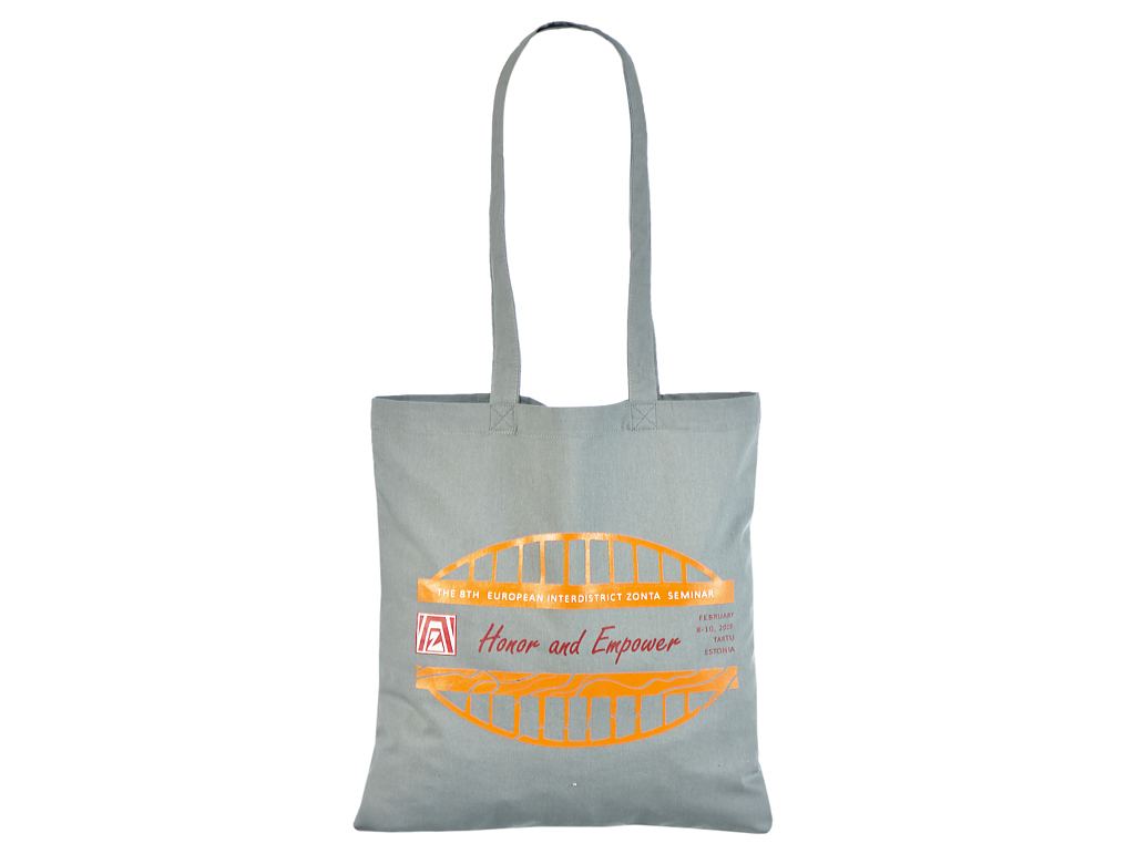 Halli värvi riidest kott pikkade sangadega. Trükiga kottide miinumum kogus on 50 kotti. Võimalik t