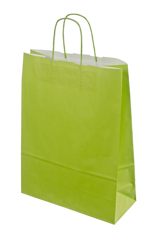Helerohelised pabernöör sangaga paberkotid on valmistatud valgest kraftpaberist, mis trükitud helerohelist värvi.
