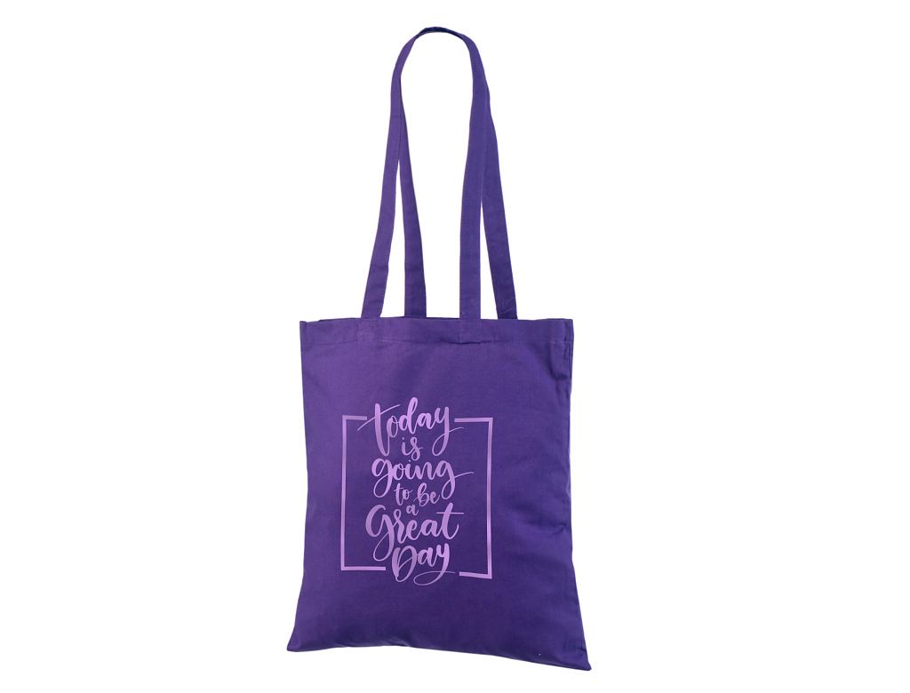 Fotogalerii-lillat värvi kotid trükiga Lillat värvi riidest kott personaalse trükiga. Trükiga kott