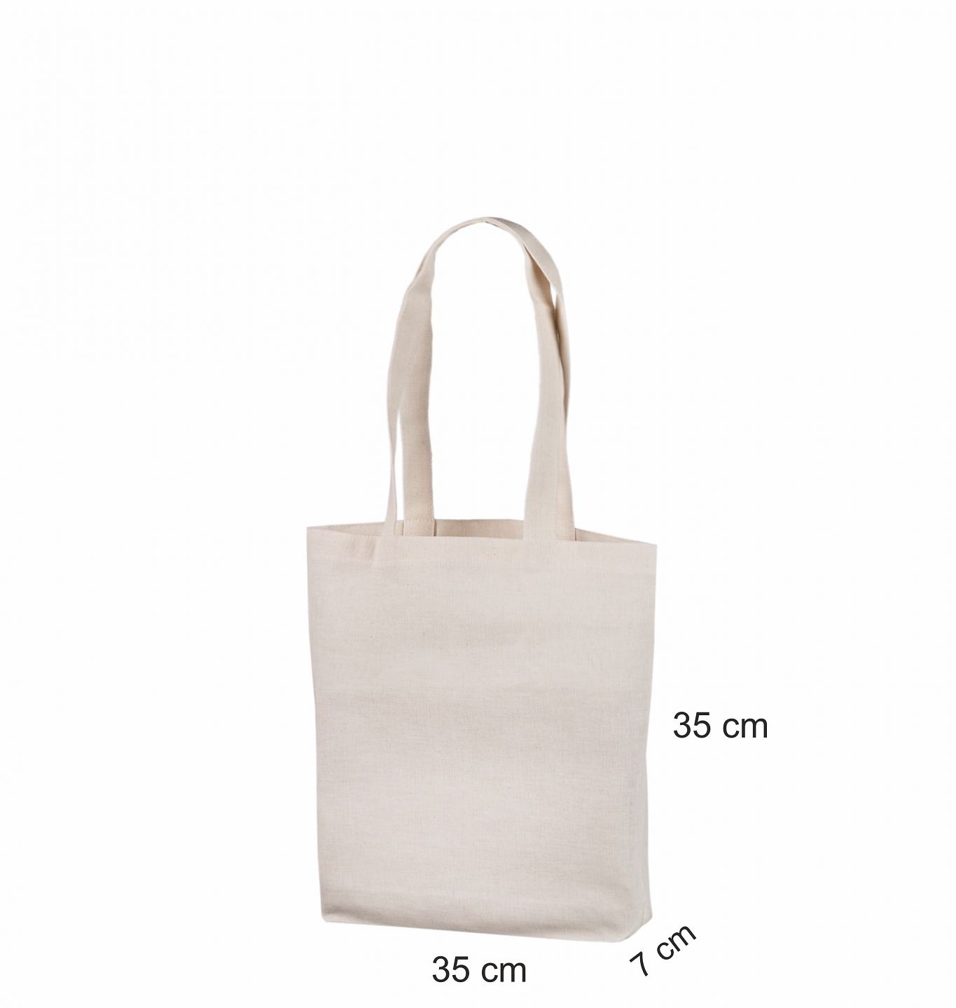 Tuote: Cot35 Koko: 35 x 35 cm ja pohjan leveys 7 cm Kestokasseilla on 60 cm pitkät kahvat, joten voit kantaa kassiasi mukavasti olkapäällä.
