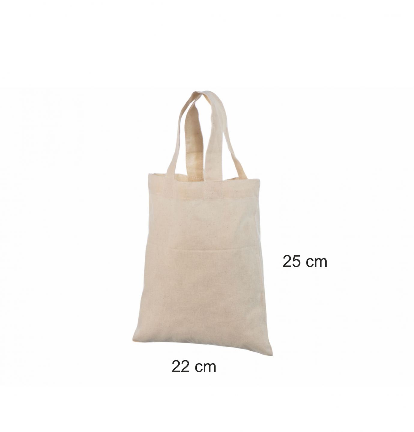 Pieni luonnonvärinen kangaskassi Tästä voit tarkastella pienen luonnonvärisen kangaskassin hintoja seuraaville valmistusmäärille: 50, 100, 200, 300, 500 ja 1 000 kassia, yksipuolisella painatuksella   Art Pienet luonnonväriset kangaskassit valmistetaan 150 g/m2 puuvillasta. Mitat: 22x25 cm