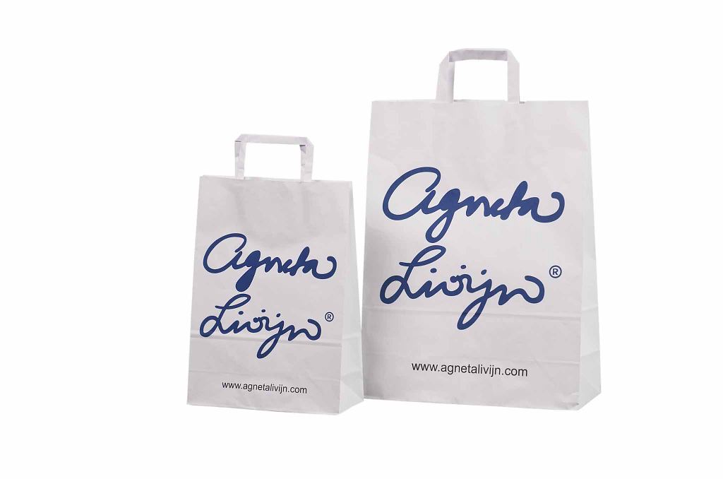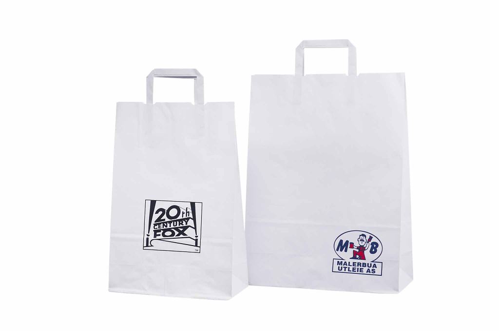 Vahva, korkealaatuinen valkoinen litteäkannikkeinen paperika.. | Referenssit-valkoiset litteäkannikeiset paperikassit