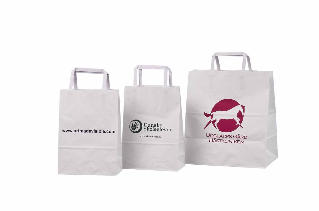 Referenssit-valkoiset litteäkannikeiset paperikassit