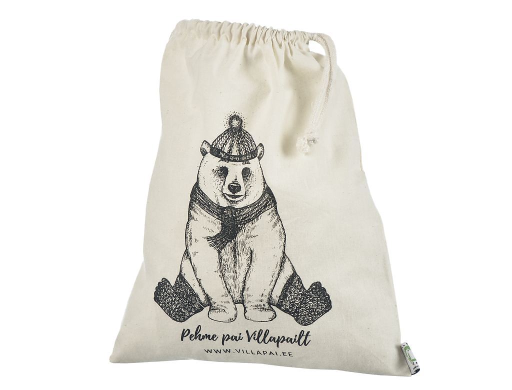 Esimerkiksi kuvassa olevan kassin suunnitteli taiteilija Kadri Kuusler juuri Villapaita varten. |