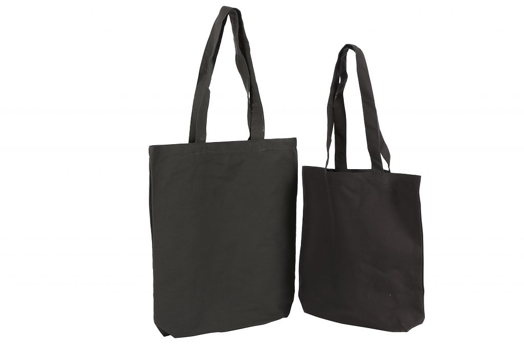 De sorte bomuldsposer har 60 cm lange håndtag og er derfor behagelige at bære over skulderen. Vi tilbyder to størrelser af sorte muleposer i ekstra kraftigt bomuld: