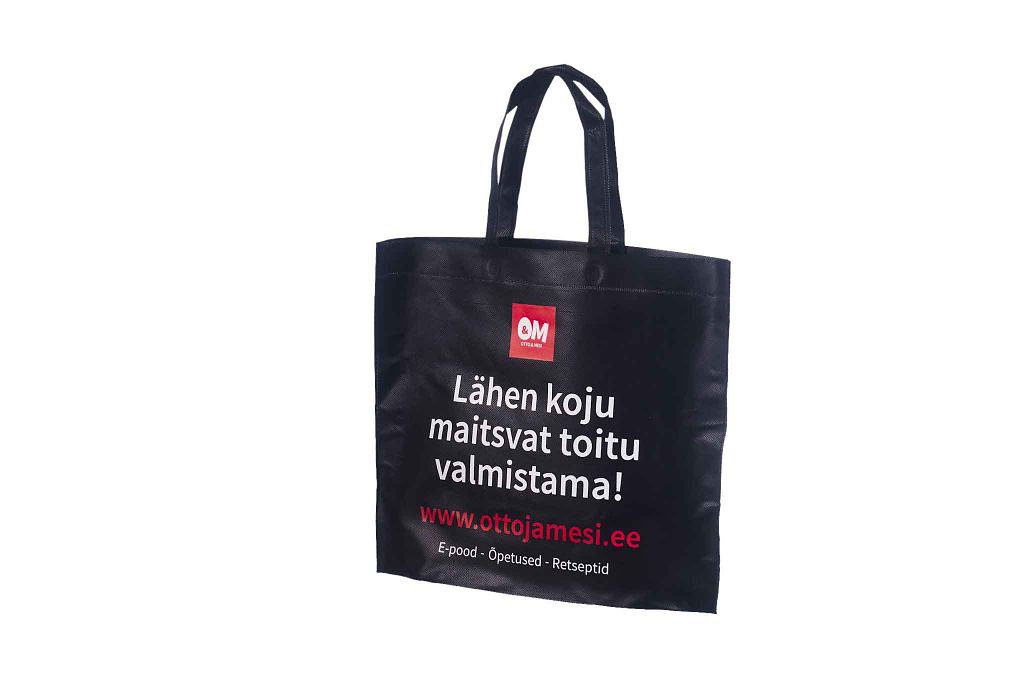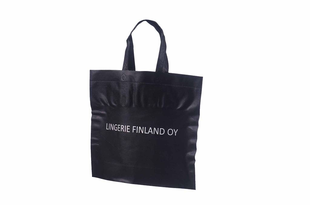 Svarta non woven-kassar. Välj mellan olika storlekar. Gratis frakt till Sverige. Minsta orderantal med personligt tryck är 50 st.