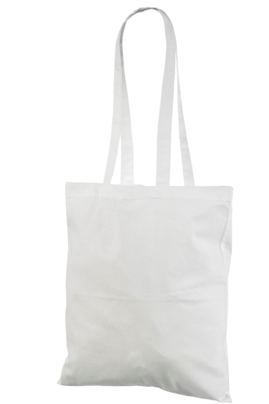 Valged riidest ostukotid on mõõtudega 38 x 42 cm.