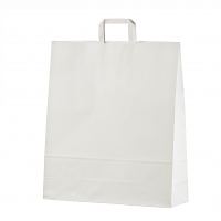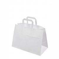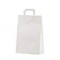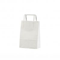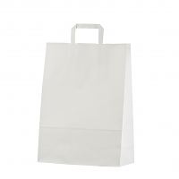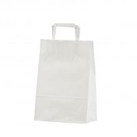 Valkoisia litteäkannikkeisia paperikasseja on aina varastossa, joten toimitusaika on nopea ja voitte tilata pienempiä määriä (vähimmäismäärä vain 50 kpl omalla logolla).