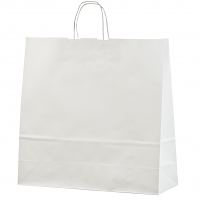 Valkoisia paperikasseja on aina varastossa, joten toimitusaika on nopea ja voitte tilata pienempiä määriä (vähimmäismäärä vain 50 kpl omalla logolla).
