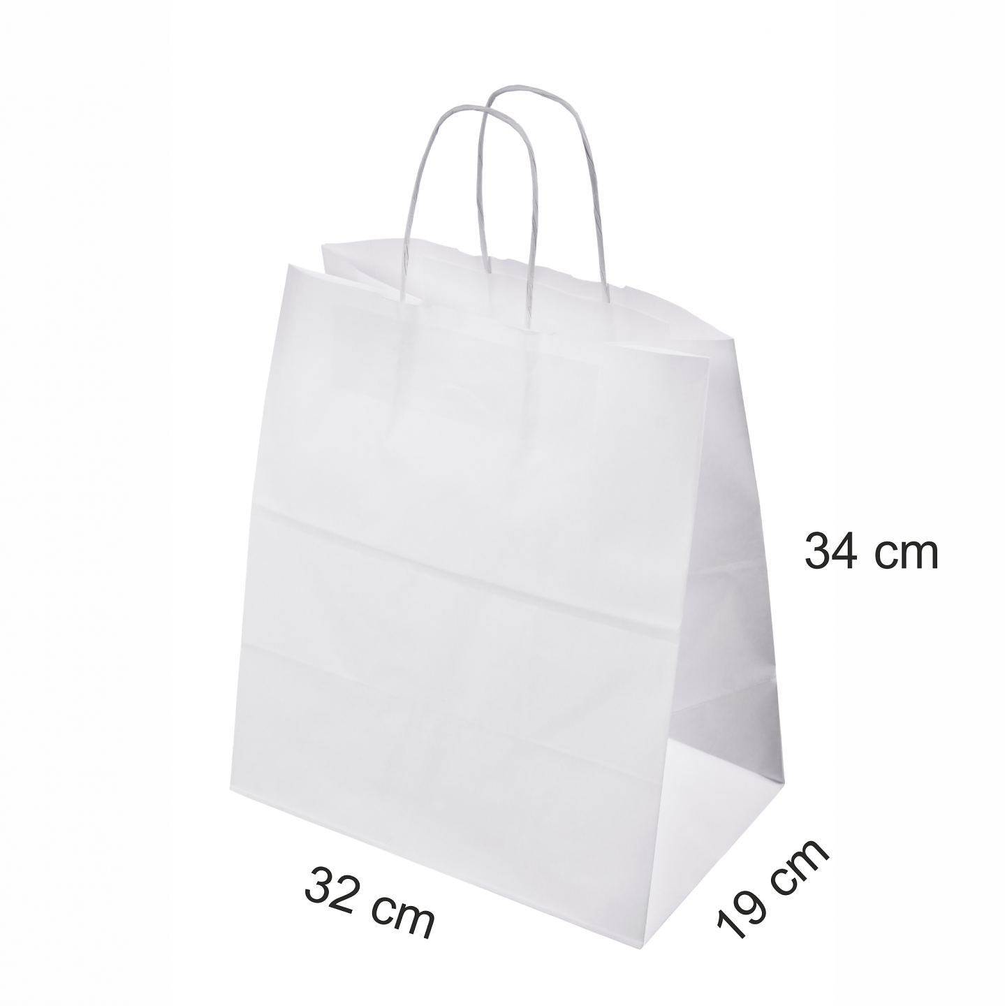 Valkoinen take away -paperikassi valmistetaan 100 gsm/m2 vahvasta kraft-paperista