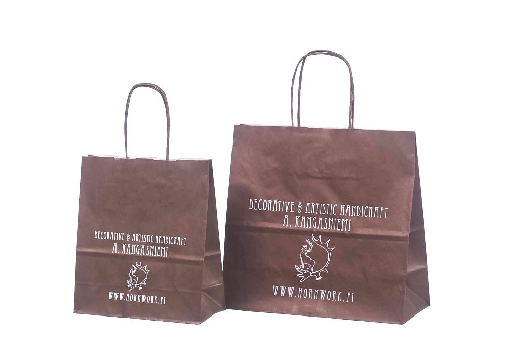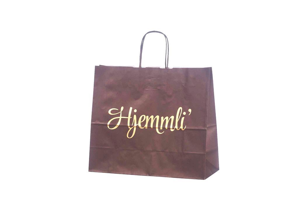 mörkbrun papperskasse med logotyptryck | Bildgalleri - Mörkbruna papperskassar
